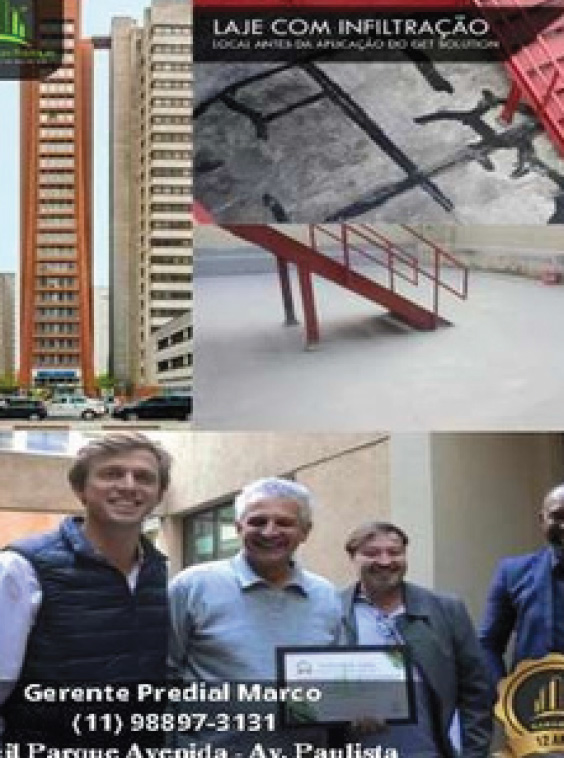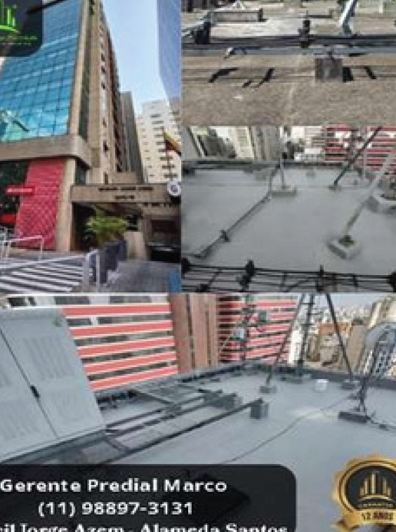 Desafio: Problemas crônicos de infiltração em lajes de cobertura, afetando edifícios emblemáticos como o Edifício Parque Avenida, Edifício Jorge Azém, Edifício Conde Luiz Eduardo Matarazzo, Edifício Paulista Atrium e Edificio New Place.